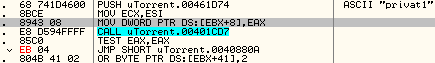 004087F3 |. 68 741D4600 PUSH uTorrent.00461D74 ; ASCII "privat1"